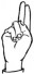 На ћирилици написано ДУШАН КОМАРНИЧКИ састоји се из 15 слова [?]. Исписано ћириличном једноручном азбуком за глувонеме: